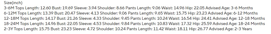Sizes: 3/6M, 6/12M, 12/18M, 18/24M, 2-3T